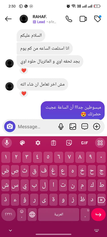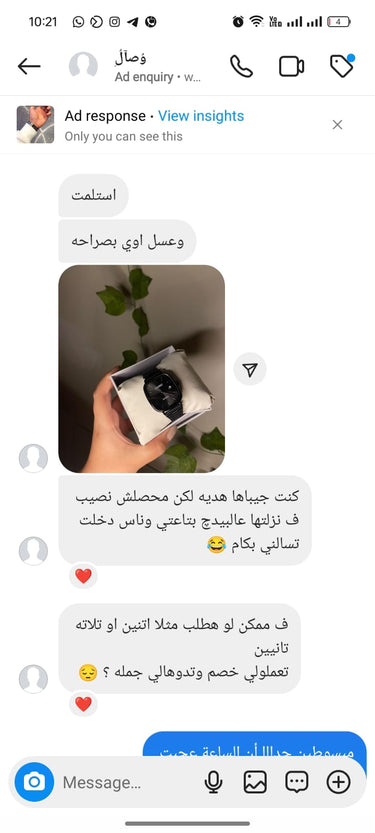 * وضح المشكلة: قولنا بالظبط إيه المشكلة في الساعة أو ليه عايز ترجعها أو تستبدلها.